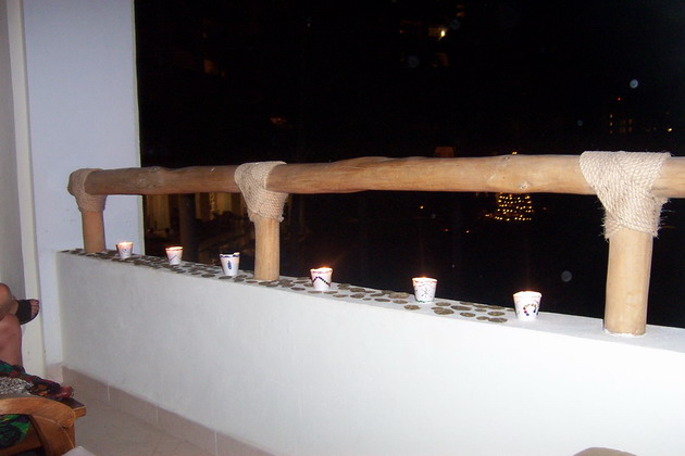 All the sand dollars on our balcony in Mexico on Christmas Night