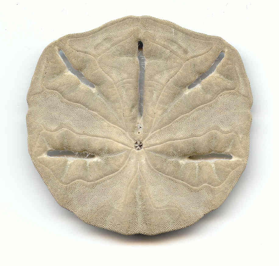 sand dollar up to the fading light to reveal the five openings in the shell and