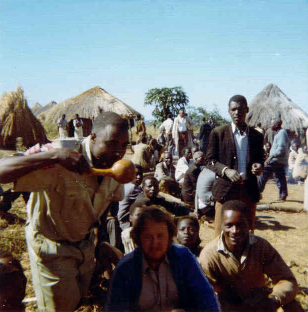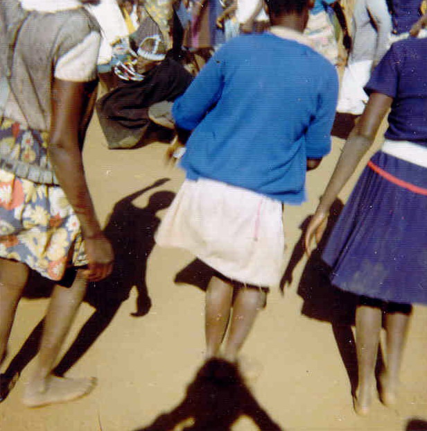 Parengeta (in black robe) dances like the lion whose spirit he was supposedly