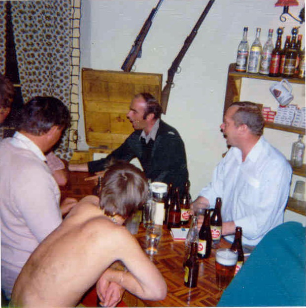 At the bar - clockwise Steve Cloete (without shirt), Jim Latham DC, Jim Porter