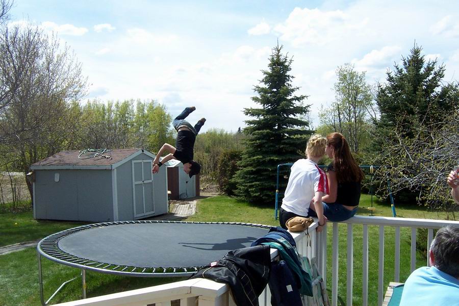 Poultney Family Album 2003 Simon is very proficient on the trampoline as witnessed here during a fun afternoon at a friend's house ! Back