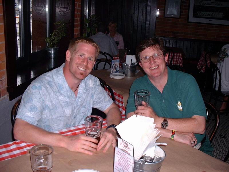 Head Coach, Tim van Vliet, and Gordon enjoy a well earned beer at the team