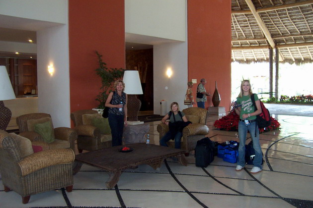 Relaxing in the front hall just after arrival - everyone beaming with excitement