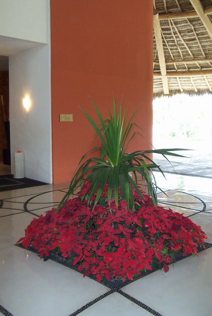 This is the main entrance to the resort - Grand Velas. The palm frond thatched roof is