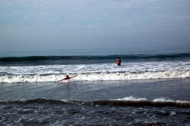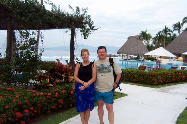Jenny and Gordon on their way to the beach. The T-shirt that Gordon was