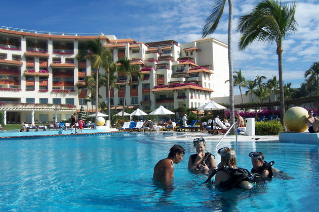The girls took a scuba diving lesson in the hotel pool but unfortunately we had