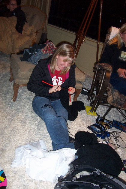 Poultney Family Album - Vernon December 2004 Andrea knitting scarves while others play Playstation Previous Photo Back to Album Next Photo