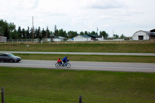 Arvid cycling along the TransCanada highway between Calgary and Strathmore,