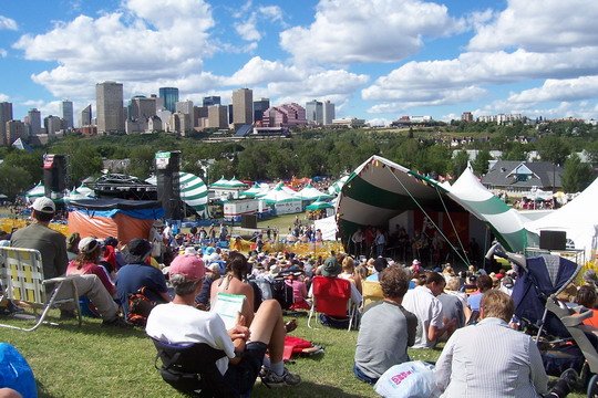 Sitting on the hill overlooking the Edmonton city skyline and river valley,