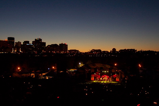 Another evening shot showing the sunset, city skyline and the main stage lit up